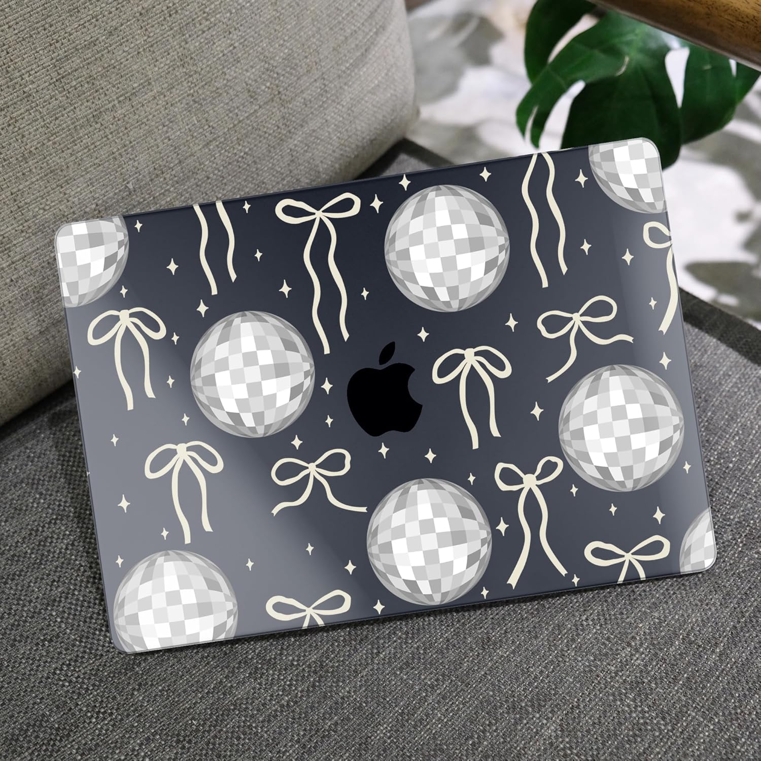 MEEgoodo Case for MacBook Pro 13 inch Case 2022 2021 2020 New A2338 M2/M1 A2251 A2289, Laptop Hard Shell with Keyboard & Camera Cover Compatible with 13 inch MacBook Pro, Silver Disco Balls & Bows