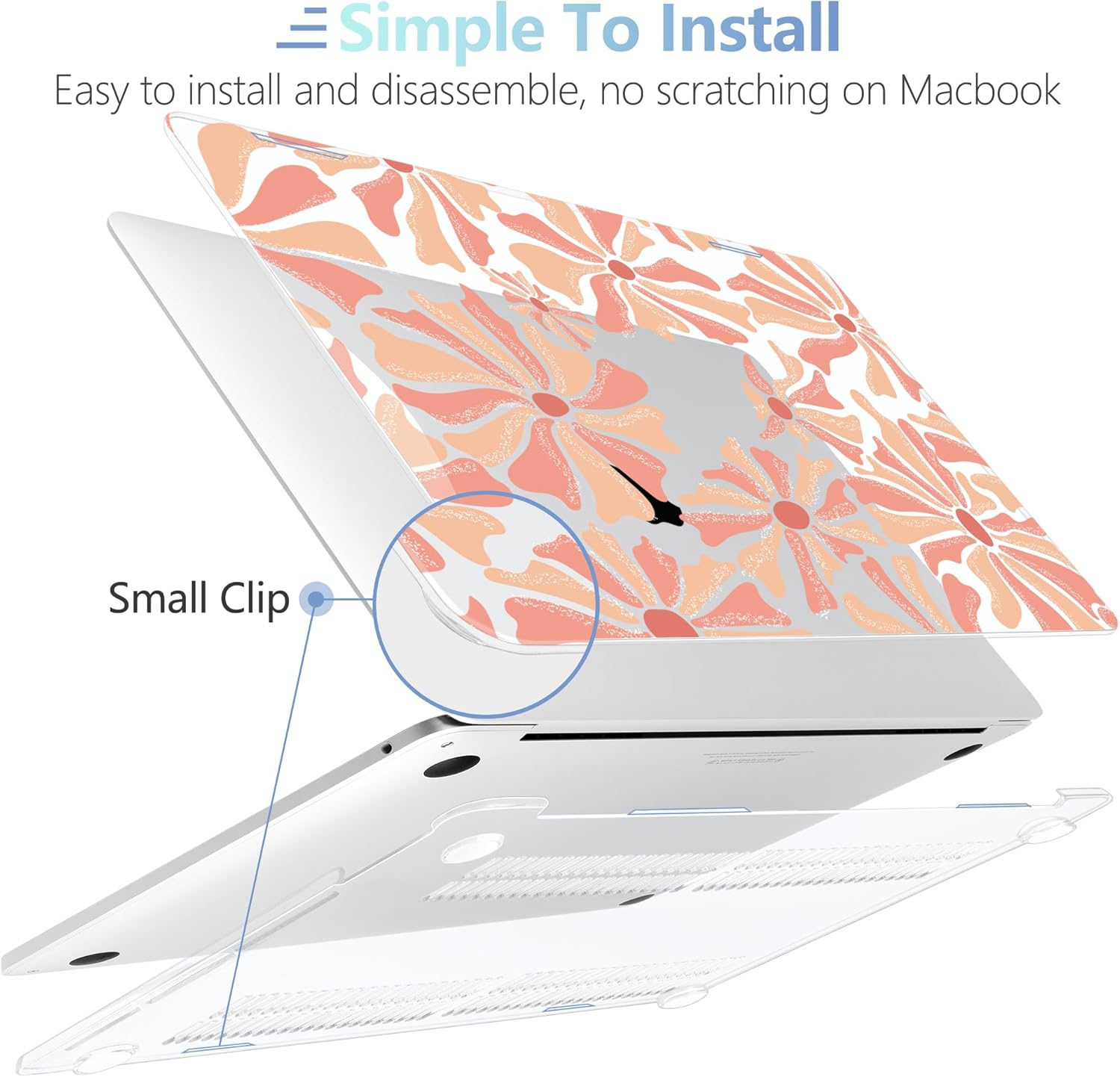 - Design Features of Case: The bottom case is designed with vents for maximum heat dissipation. The bottom case has non-slip feet to avoid slipping during use. The precise cutting design allows you to access all the ports of your MacBook. It is easy to install and remove