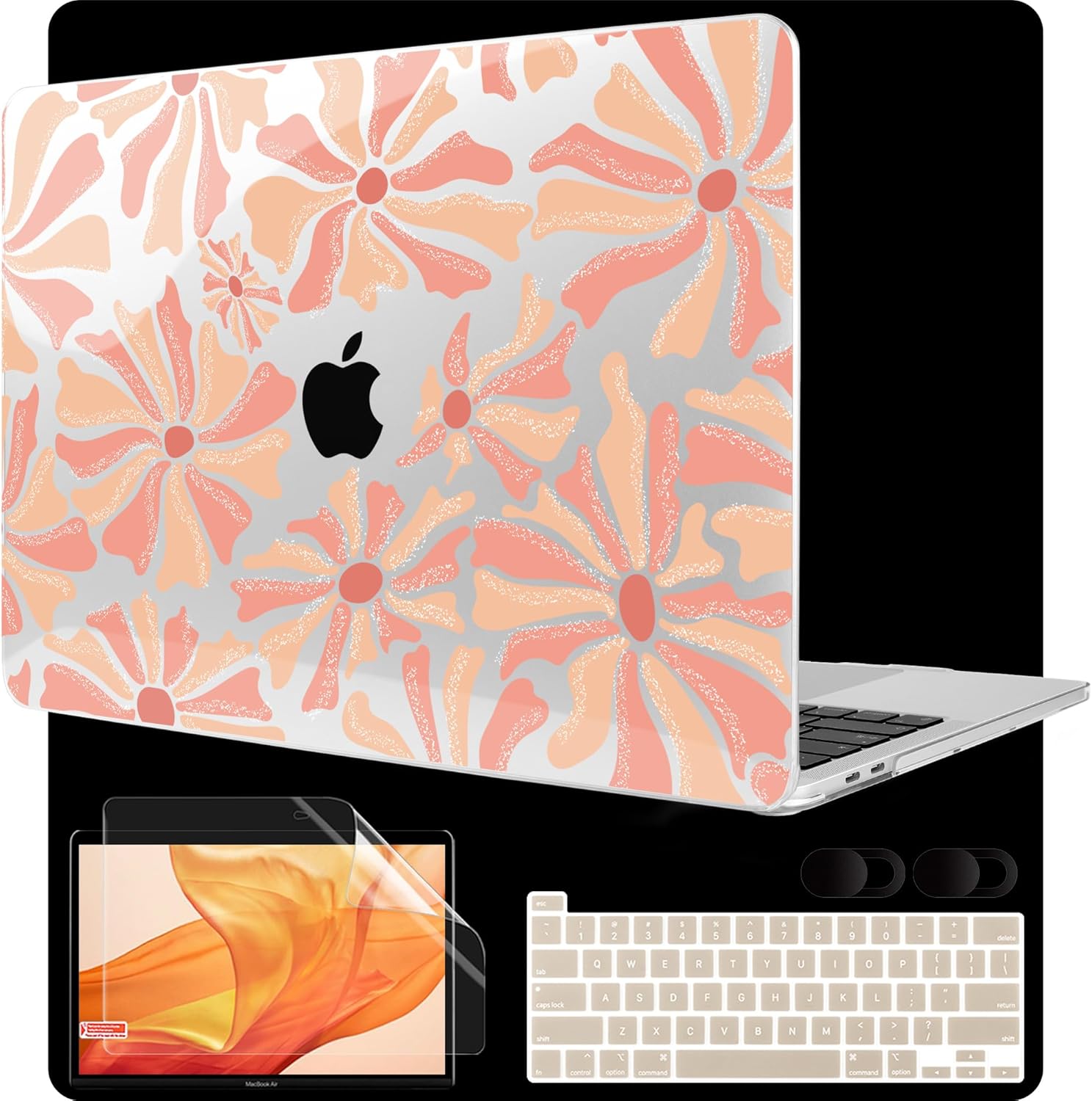 - 3 Accessory Functions: The webcam cover covers your 1080p Face time HD webcam when you are not working, preventing cyber criminals from accessing your personal privacy. The screen protector provides a perfect touch screen, protecting your screen from daily scratches, easy to install, and no residue when removed. The matching keyboard cover provides full protection for your MacBook keyboard to prevent key wear
