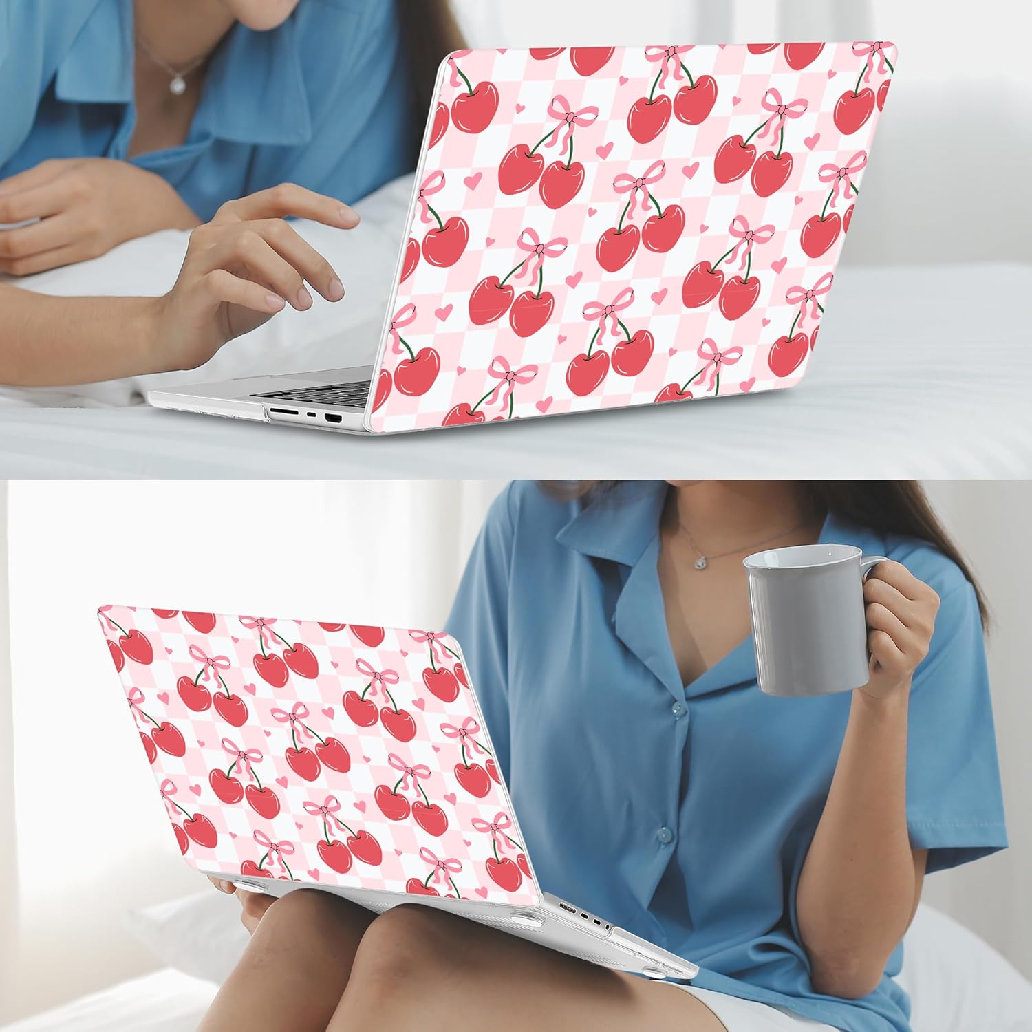 Mektron Case for 2025 MacBook Pro 16" M4 A3403 A3186 M3 A2991 M2 A2780 M1 A2485 (2021/2023/2024) Pro/Max with Touch ID, Hard Shell Plastic Laptop Cover Keyboard Cover, Cherries Bows C353