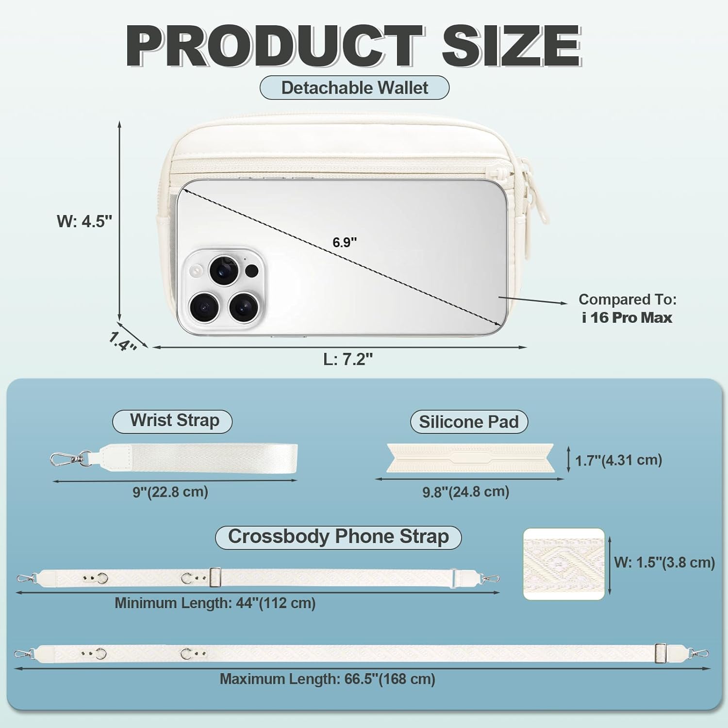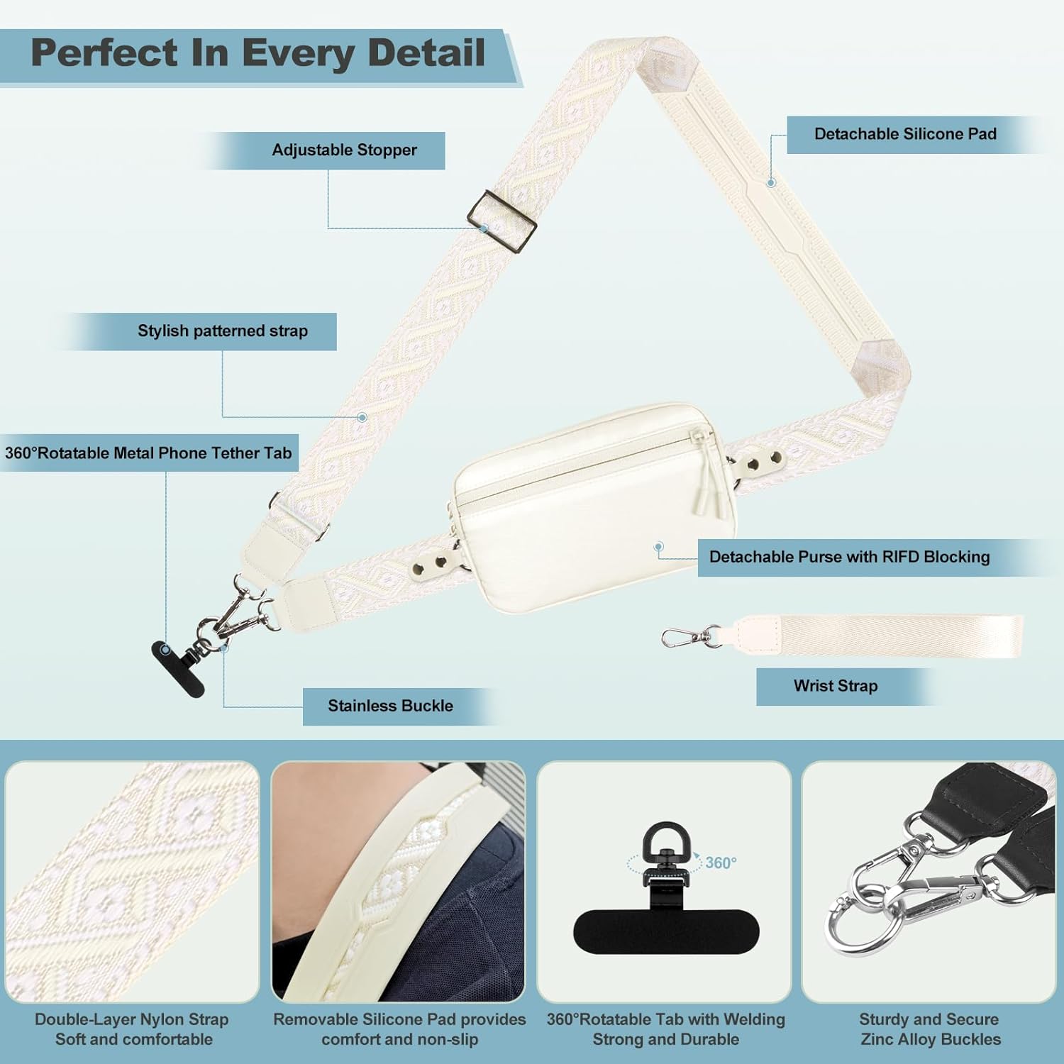 - Customizable Fit for Everyone: This stylish printed phone strap crossbody is crafted with an adjustable length ranging from 44 to 66.5 inches and features a comfortable 1.5-inch width, making it suitable for all body types—whether you're tall or short, slender or robust. The soft-touch material offers gentle comfort against your skin, and the removable silicone pad enhances comfort for all-day wear when used as a crossbody.