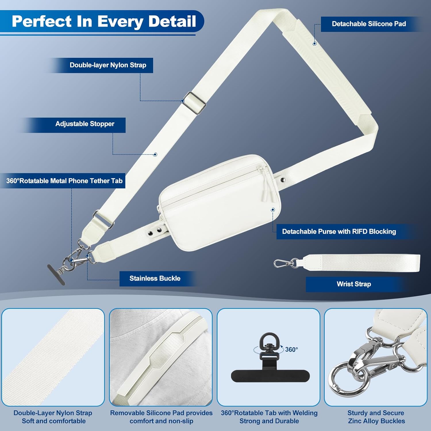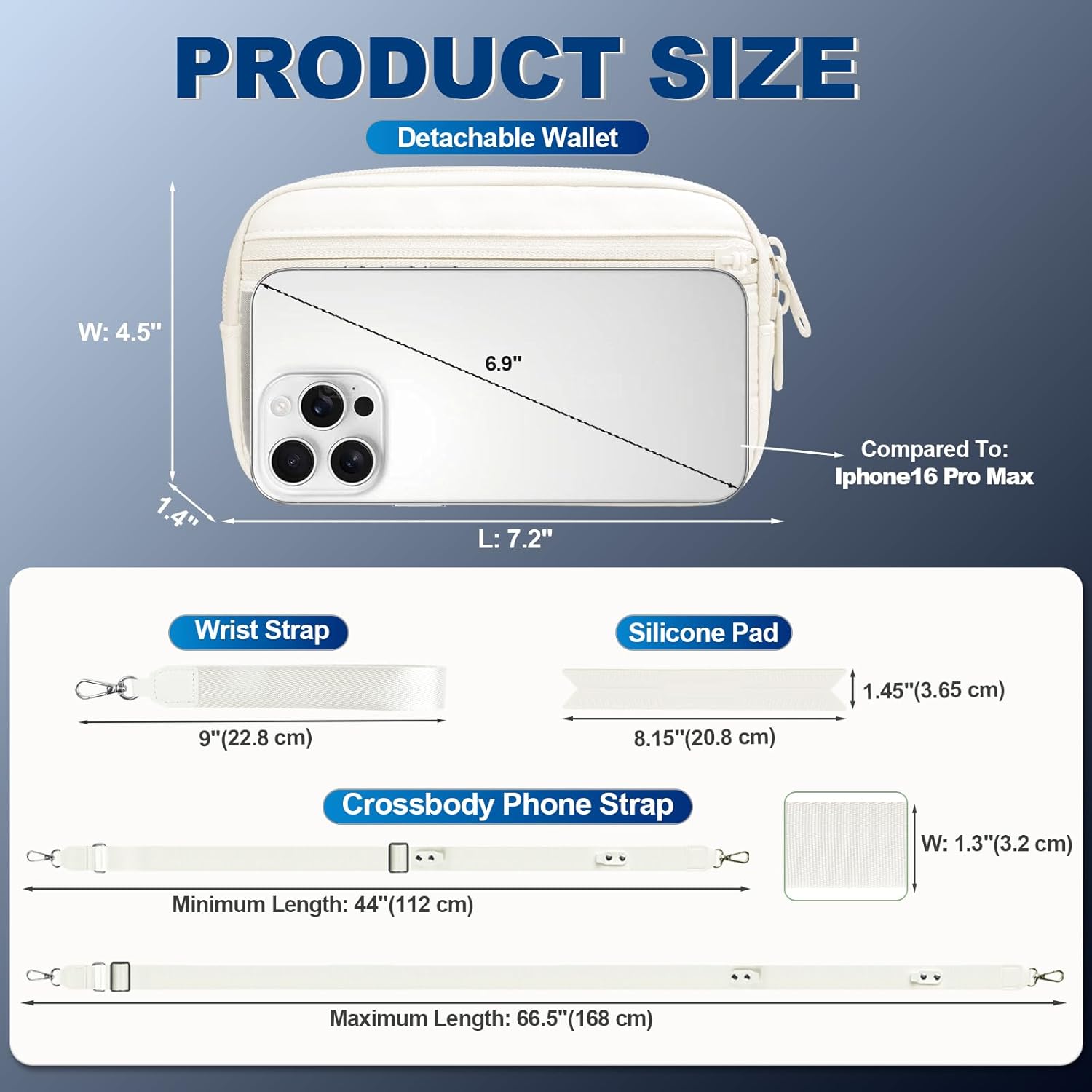 - Customizable Fit for Everyone: This phone strap crossbody is crafted from premiun double-layer nylon, it can be freely adjusted from 44 to 66.5 inches, and features a comfortable 1.3-inch width, providing an ideal fit for all body types - whether you're tall or short, slender or robust. the soft-touch meterial ensures gentle comfort against your skin, while the removable silicone pad ensures all-day comfort when worn crossbody.