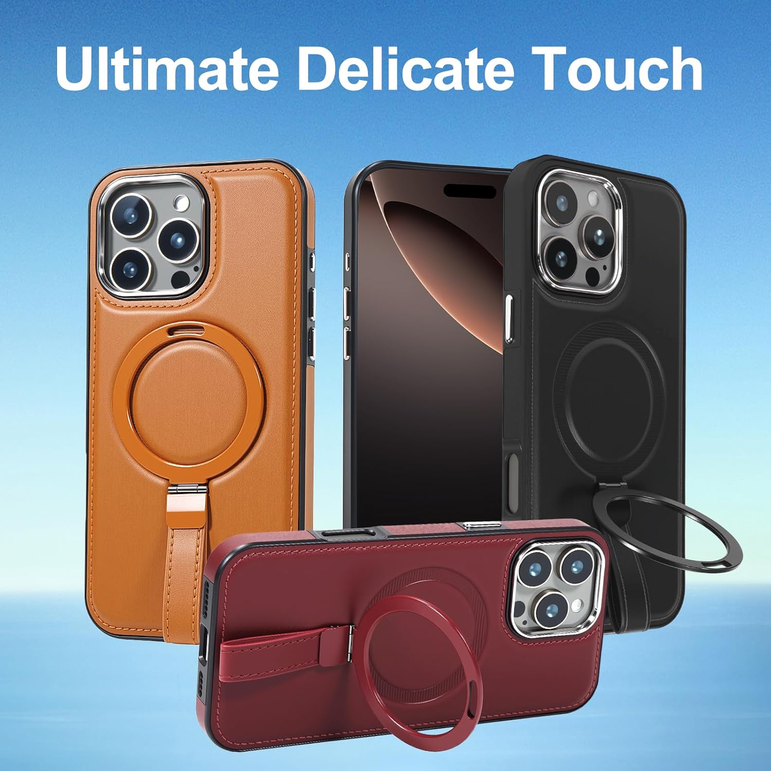- Magnetic Ring Holder & MagSafe Compatible Charging: The hands-free magnetic revolution! The ring holder rotates freely 180°, instantly transforming into a TV viewing tool or stable grip stand. Our leather case is fully compatible with MagSafe, enabling wireless charging without removing the phone case. Easily attaches to car mounts and power banks for ultra-convenient use. Elevate your iPhone experience to new heights with safe, efficient control at your fingertips