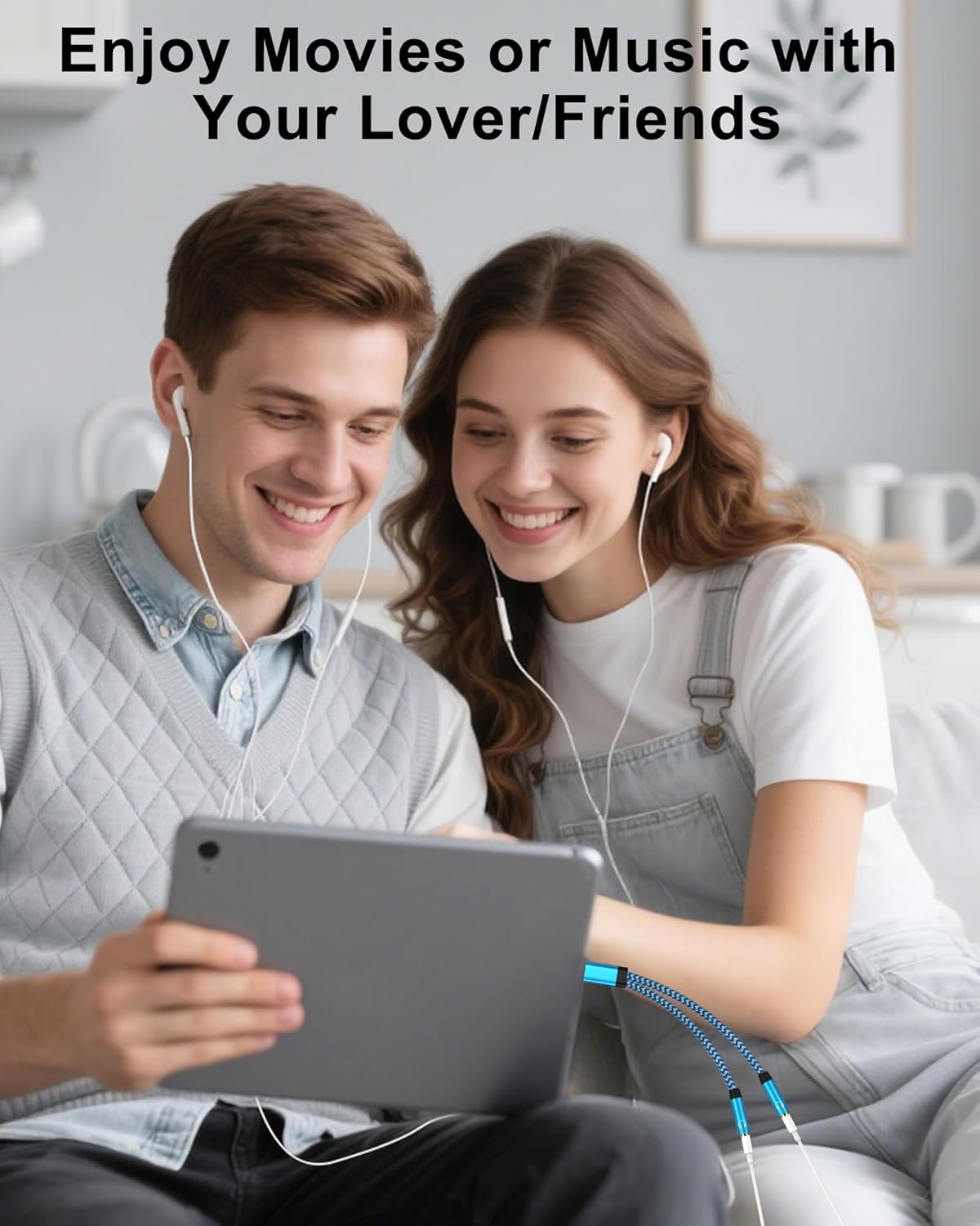 - 【USB C Audio Sharing Splitter】 The USB C to headphone jack adapter can convert the signal from one usb type c port into two 3.5mm female aux audio port, allowing you and a friend to enjoy movies, music, or games together without sharing a single earbud. Perfect for flights, road trips, and family travel.