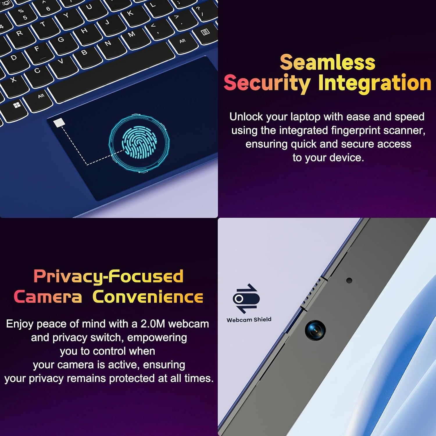 - Smart Security & Comfort Features: Features a fingerprint reader on the touchpad for quick access, backlit keyboard for low-light use, dual mics for video calls, and a 3-cell 4700mAh smart battery for long-lasting mobility