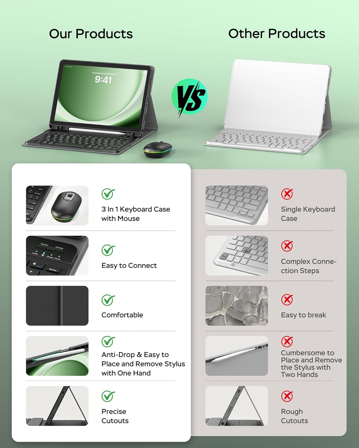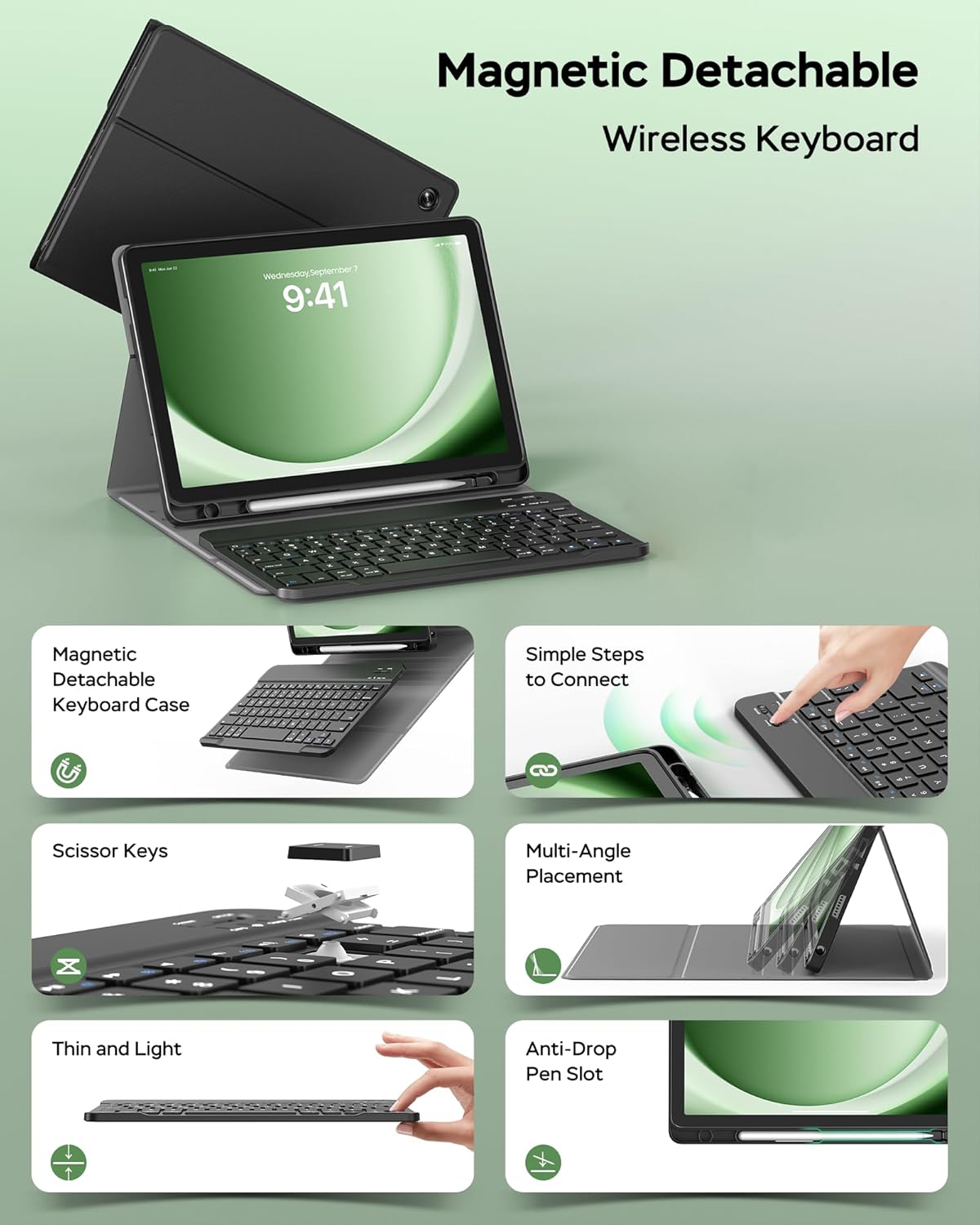 - [Complete Package & Reliable Support] Your order includes: 1 x Samsung Galaxy Tab 9 Plus/A9+ Case, 1x Detachable Magnetic Keyboard, 1x USB-C Charging Cable, 1x User Manual. We stand behind our product with a 12-month hassle-free warranty and friendly customer service. Your satisfaction is our top priority!
