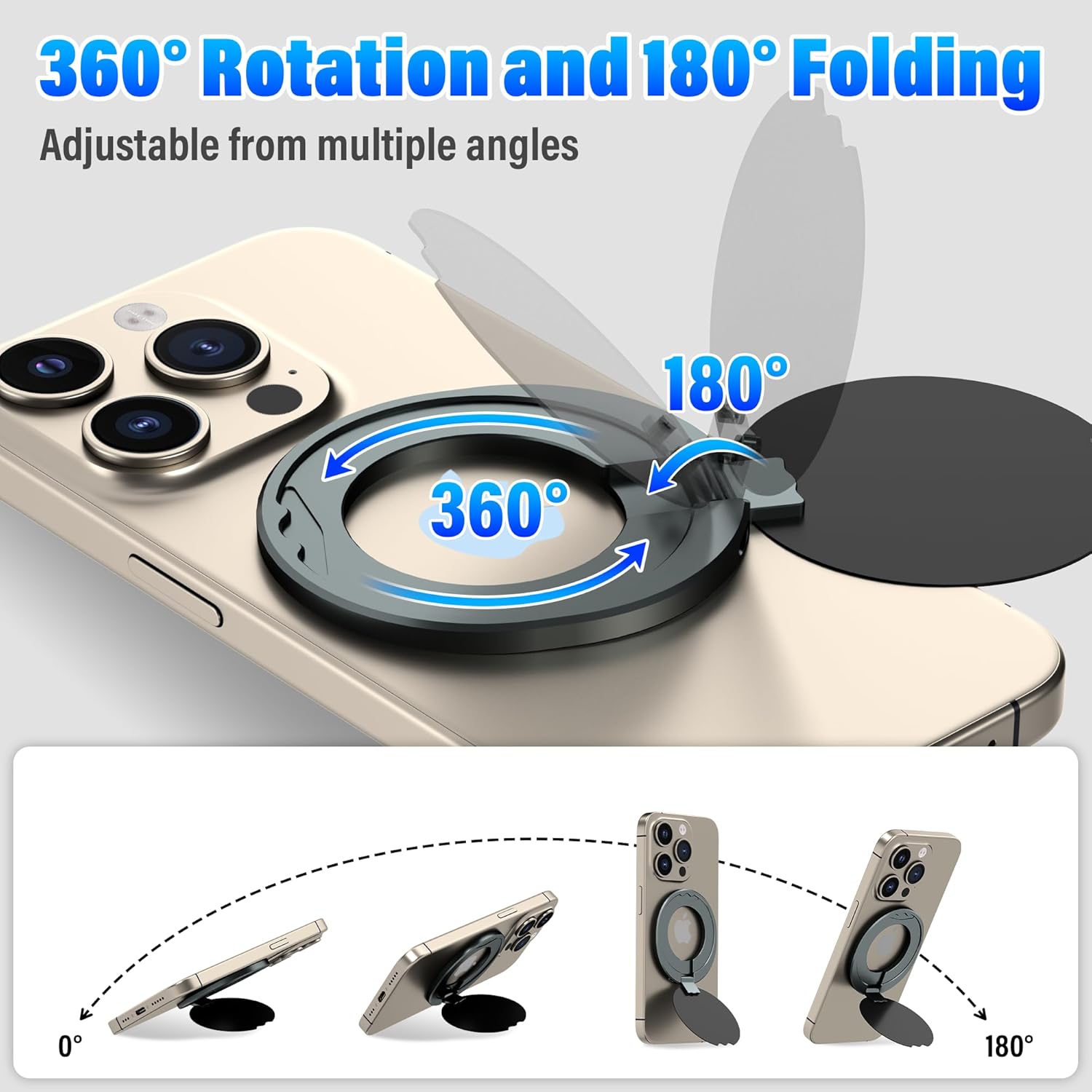 - ๐๐จ๐ฆ๐ฉ๐๐ญ๐ข๐๐ฅ๐ ๐ฐ๐ข๐ญ๐ก ๐๐ฅ๐ฅ ๐๐ก๐จ๐ง๐๐ฌ: This magsafe phone stand is directly compatible with iPhone 17/16/15/14/13/12 series and MagSafe phone cases. We also comes with a magnetic ring that provides the same strong magnetic fixation function for Non-MagSafe phones