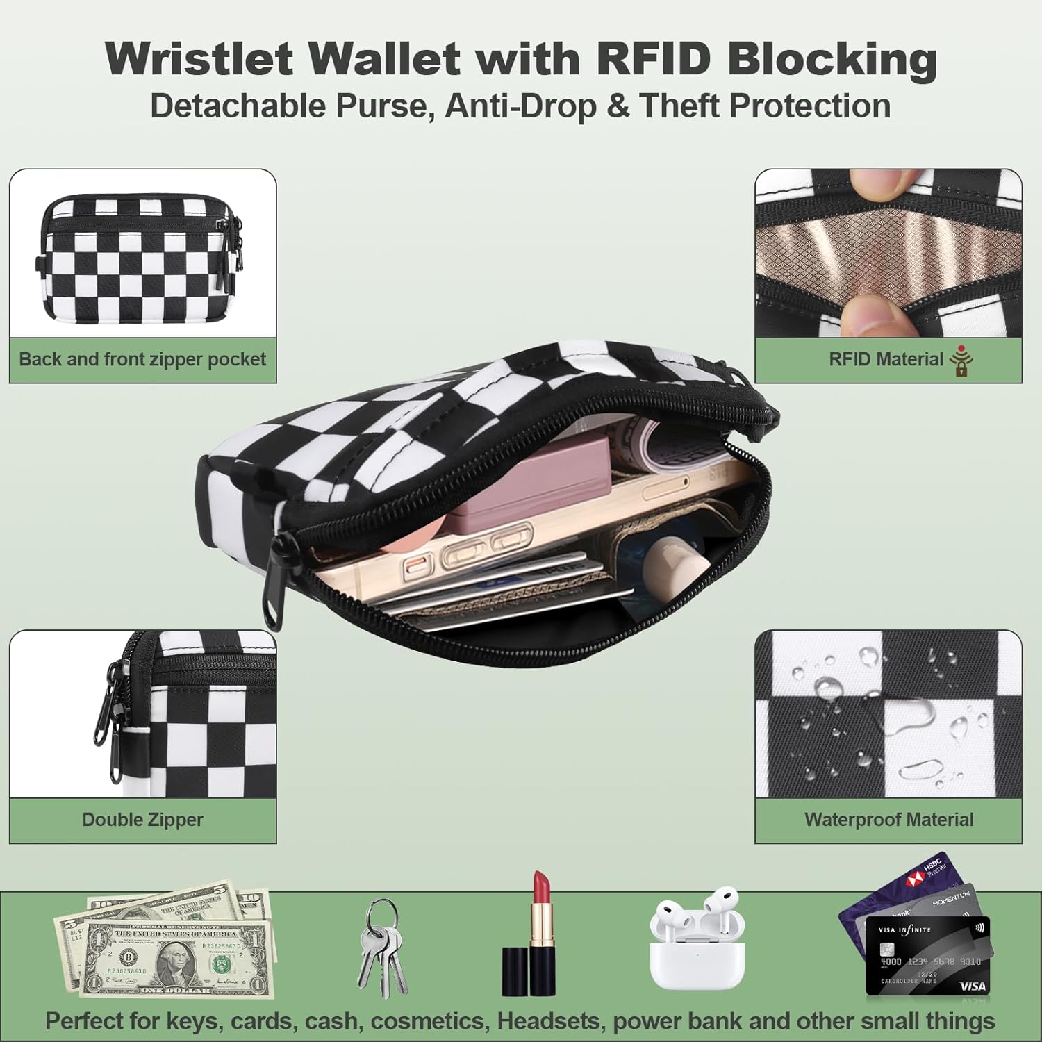 - Detachable RFID Wallet: This versatile wristlet wallet (6.3" L x 4.3" W x 1.2" H) is crafted from durable, waterpoof nylon and features RFID-blocking technology to protetct your cards from unauthorized scanning. It offers ample storage space - with 3 zippered compartments, a large main pocket, interior open pocket, 3 card slots, interior slip pocket, rear zip pocket, and front zip pocket. keep your essentials organized, secure, and easily accessible—perfect for travel, errands, or everyday use!