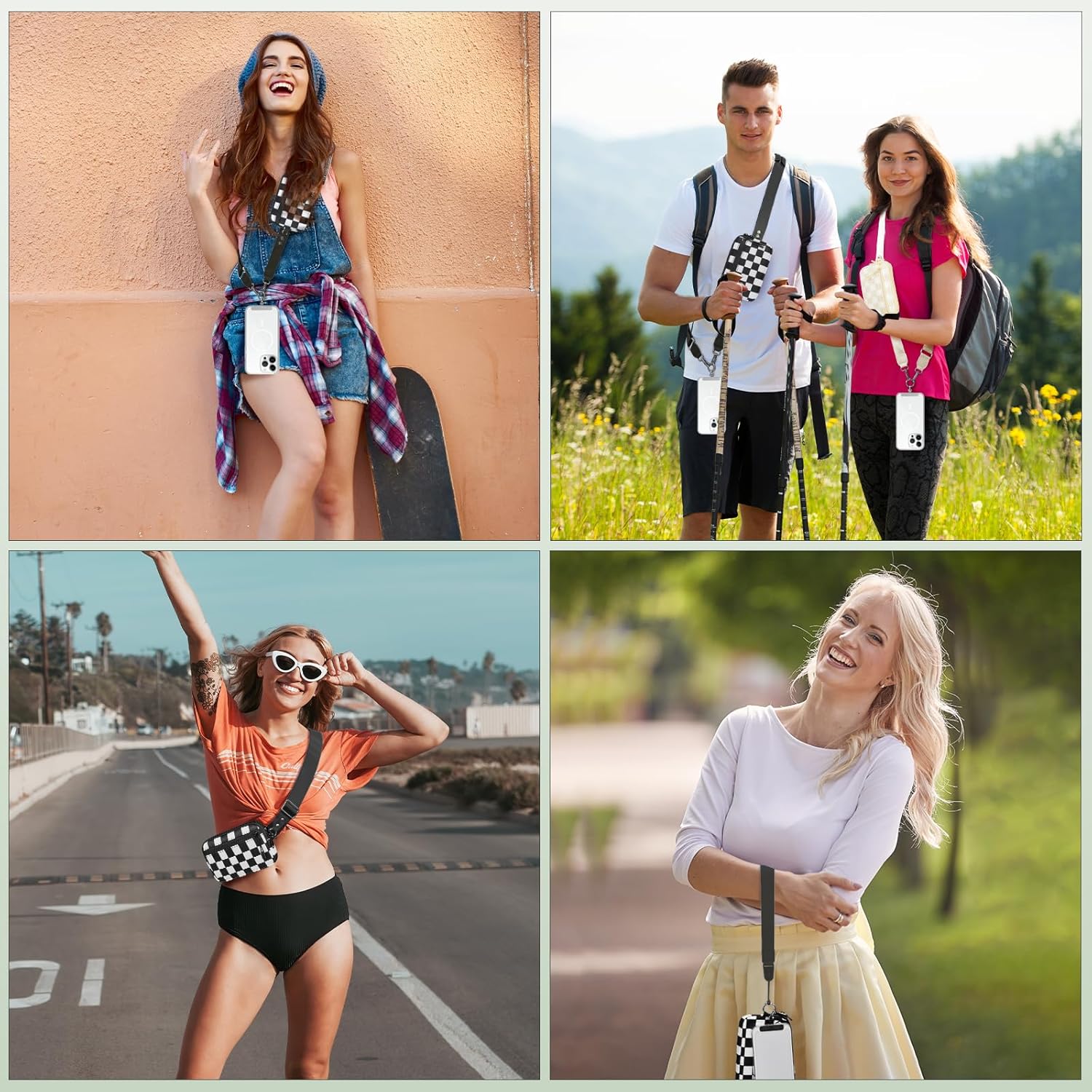 Clip and Go Strap for Phone with Wallet Crossbody, Adjustable Phone Lanyard with Detachable RFID Wristlet Wallet, Phone Strap with Phone Tabs for All Phones, Black Checkered (M)