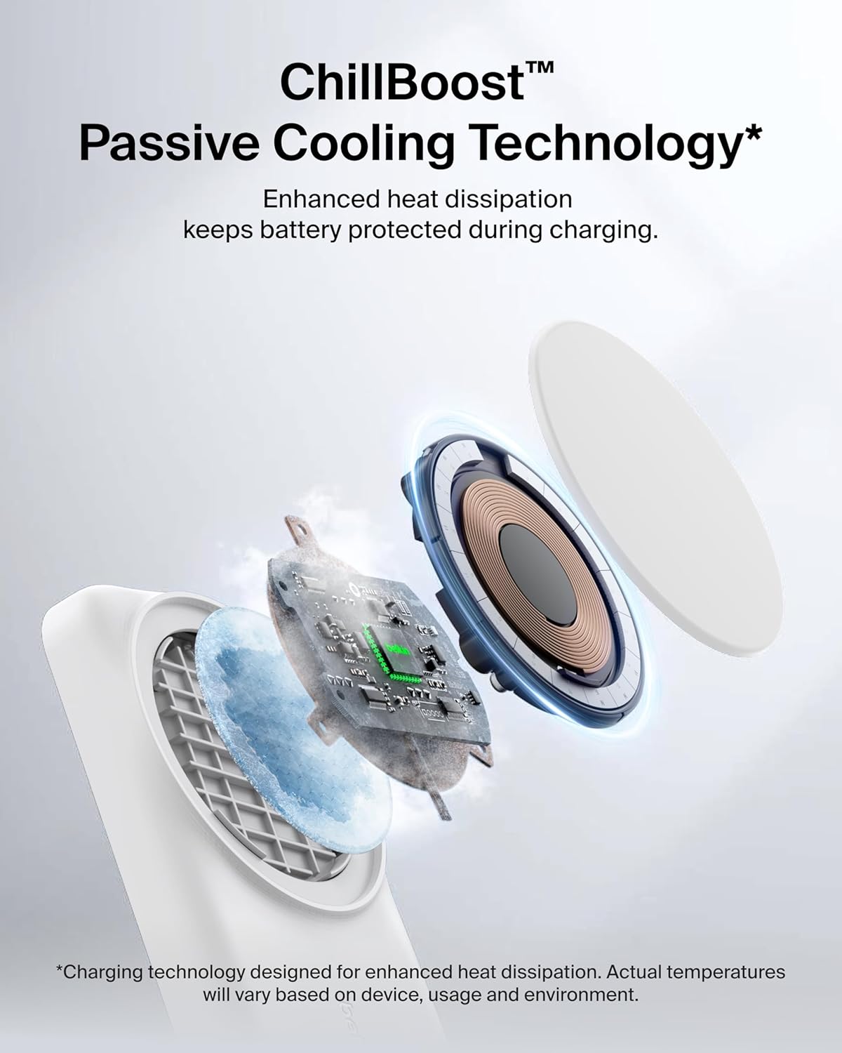 - SAFE, COOL, AND SUSTAINABLE: This charger is cleverly crafted with fire-resistant, soft-touch silicone, recycled materials. Belkin SmartProtect and ChillBoost passive cooling ensure safe, efficient charging while protecting your devices and battery.