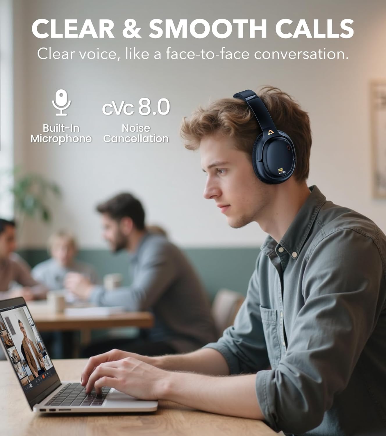 - CLEAR CALLS, JUST LIKE FACE TO FACE: With powerful cVc 8.0 noise cancellation, these over-ear noise cancelling headphones block background noise so your voice comes through crisp and natural. Perfect for meetings, voice chats, or video calls, they make every conversation feel effortless and in-person