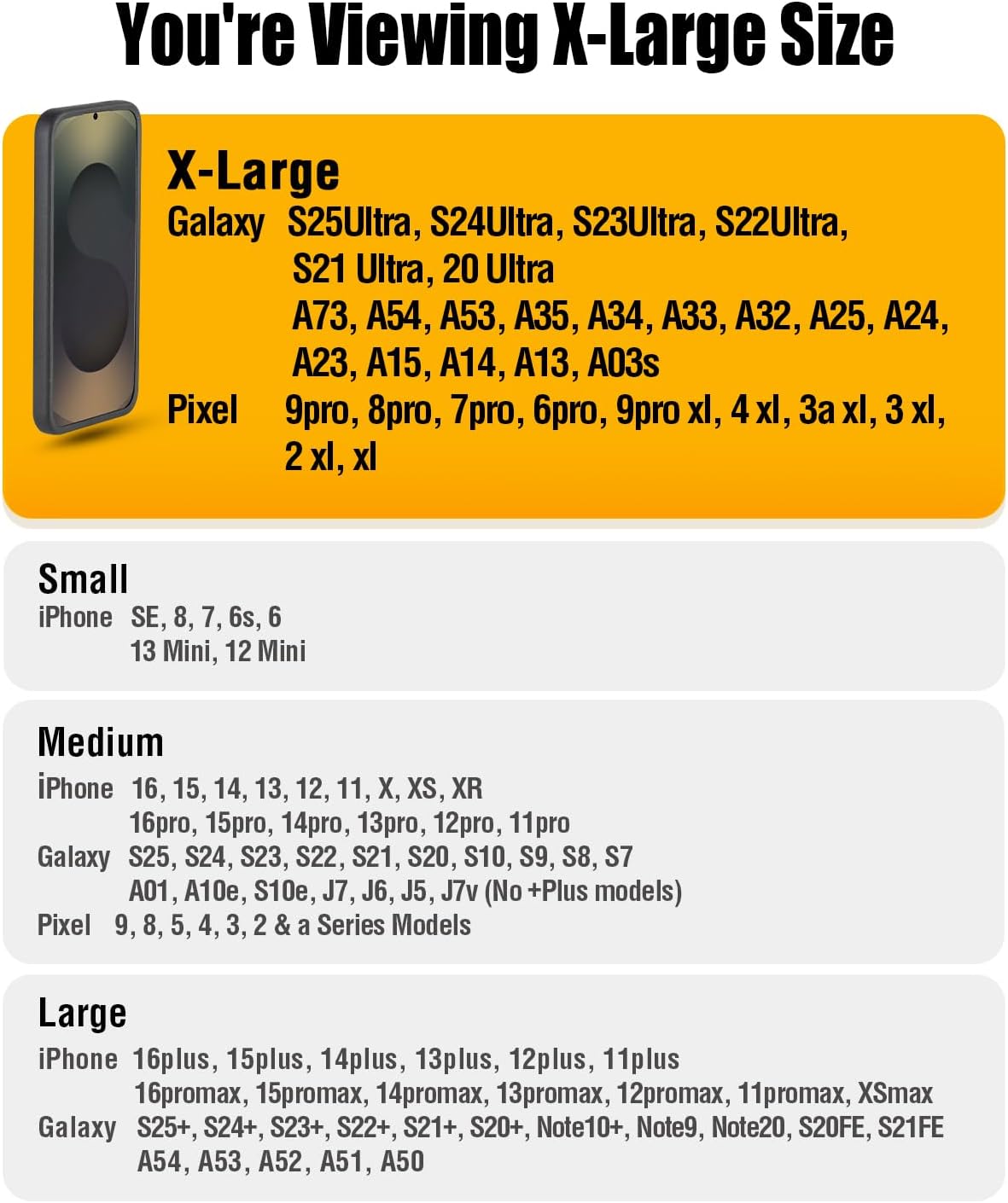 - Compatible Phone Models : Samsung Galaxy S25ultra, S24ultra, S23ultra, S22ultra, S21ultra, S20ultra, A73, A54, A53, A35, A34, A33, A32, A25, A24, A23, A15, A14, A03s, Google Pixel 9pro, 8pro, 7pro, 6pro, 9proxl, 4xl, 3axl, 3xl, 2xl, xl Samsung Galaxy S25ultra, S24ultra, S23ultra, S22ultra, S21ultra, S20ultra, A73, A54, A53, A35, A34, A33, A32, A25, A24, A23, A15, A14, A03s, Google Pixel 9pro, 8pro, 7pro, 6pro, 9proxl, 4xl, 3axl, 3xl, 2xl, xl