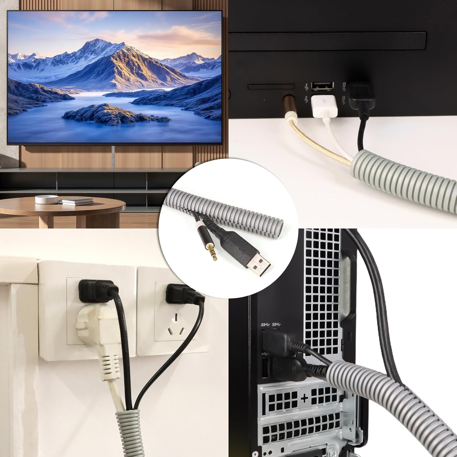 - WIDE APPLICATION: Flexible and versatile, this cord protector can be used to protect wires in industry, automotive engine compartment wiring, homes, and offices. Ideal for organizing and protecting power cords, entertainment system wiring, Ethernet cables, wiring harnesses, small hoses, and cable conduits.