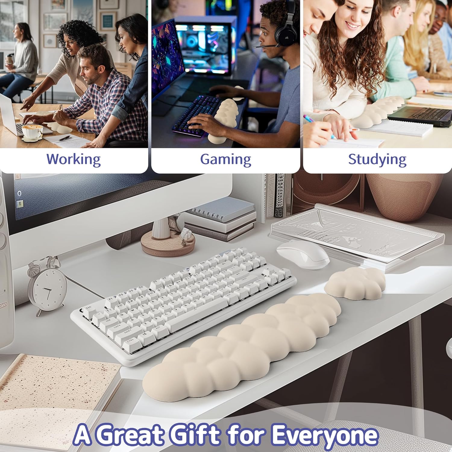 Cloud Wrist Rest Keyboard, Cloud Keyboard Wrist Pad Set with PU Leather Memory Foam, Cute Arm Rest for Palm Support, PC/Gaming Desk Accessories/Office Setup/Computer Hand Cushion - Beige