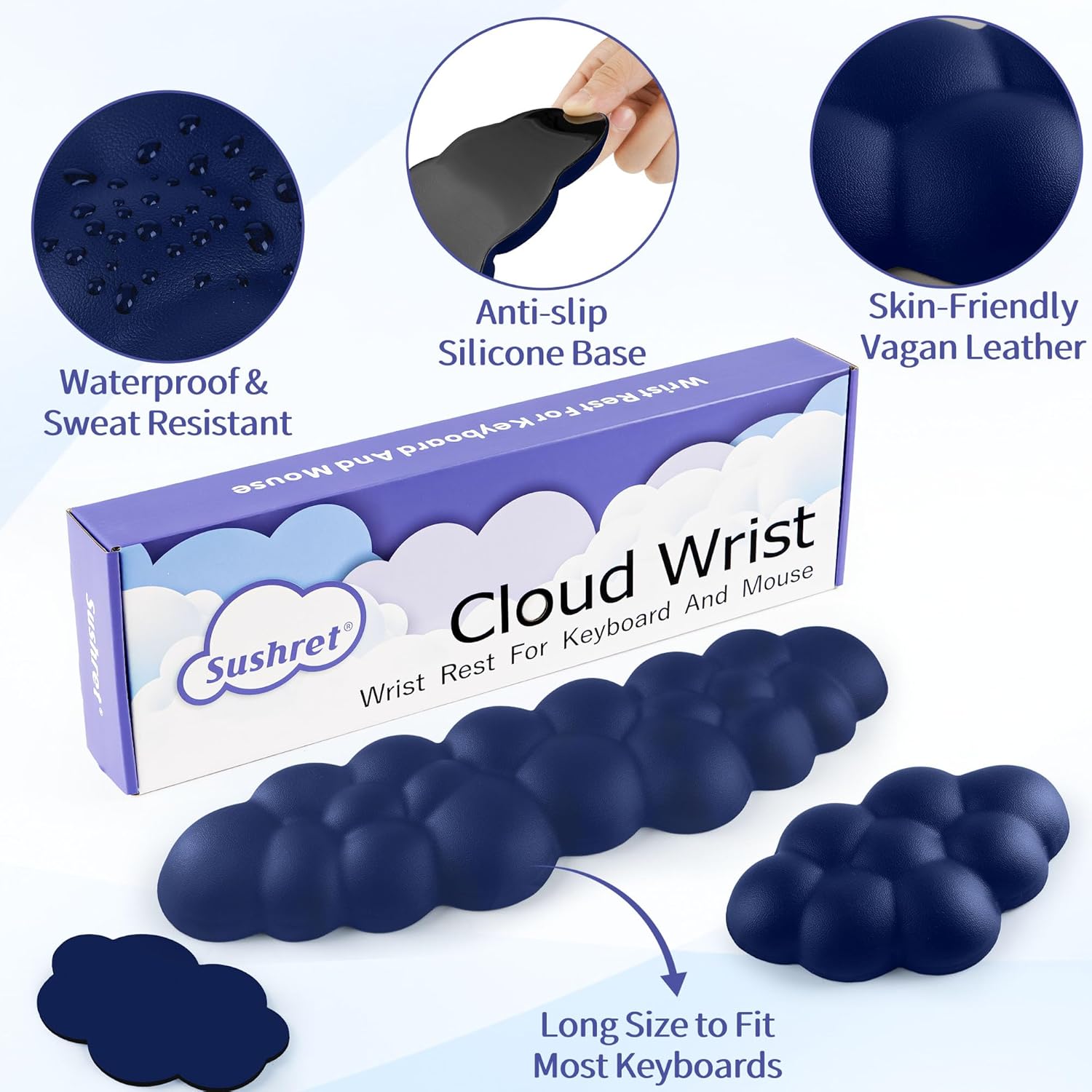 Cloud Wrist Rest Keyboard, Cloud Keyboard Wrist Pad Set with PU Leather Memory Foam, Cute Arm Rest for Palm Support, PC/Gaming Desk Accessories/Office Setup/Computer Hand Cushion - Dark Blue