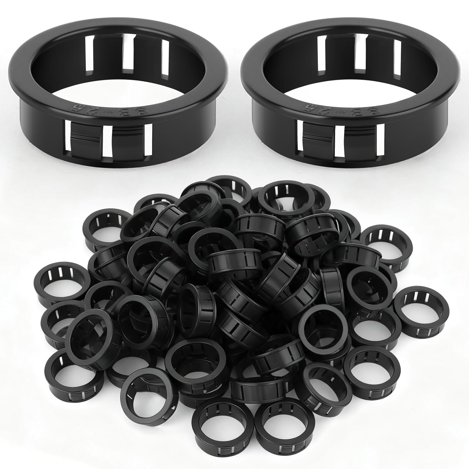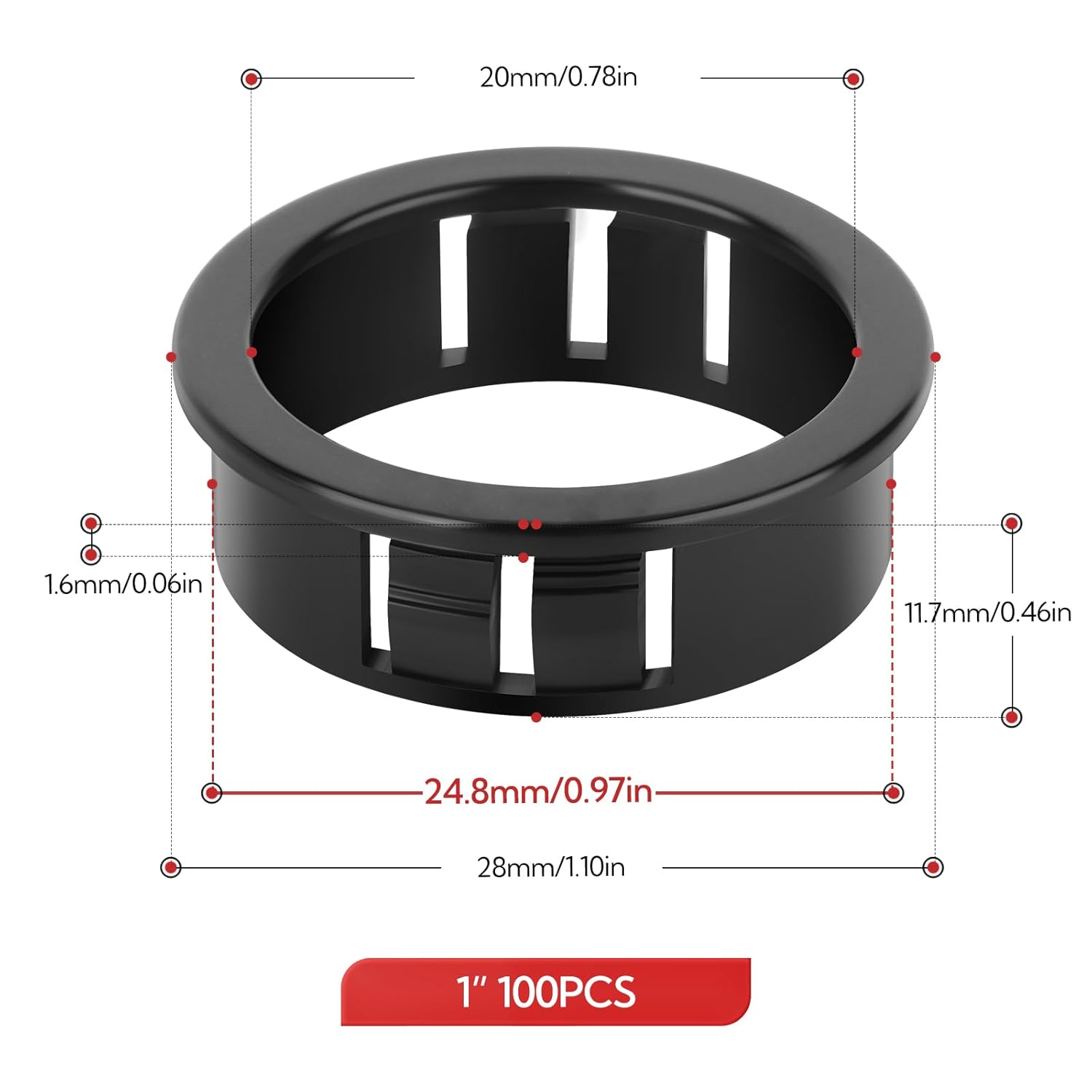 100PCS 1" Black Cable Snap Bushing Grommet, Snap in Cord Bushing Protect Cables