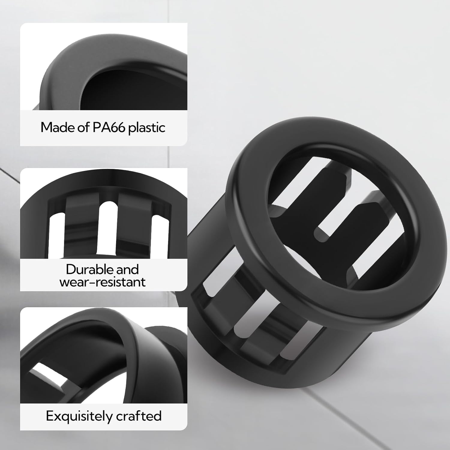 - Easy Installation: Snap the cable clip sleeve into the mounting hole; stays securely in place after installation