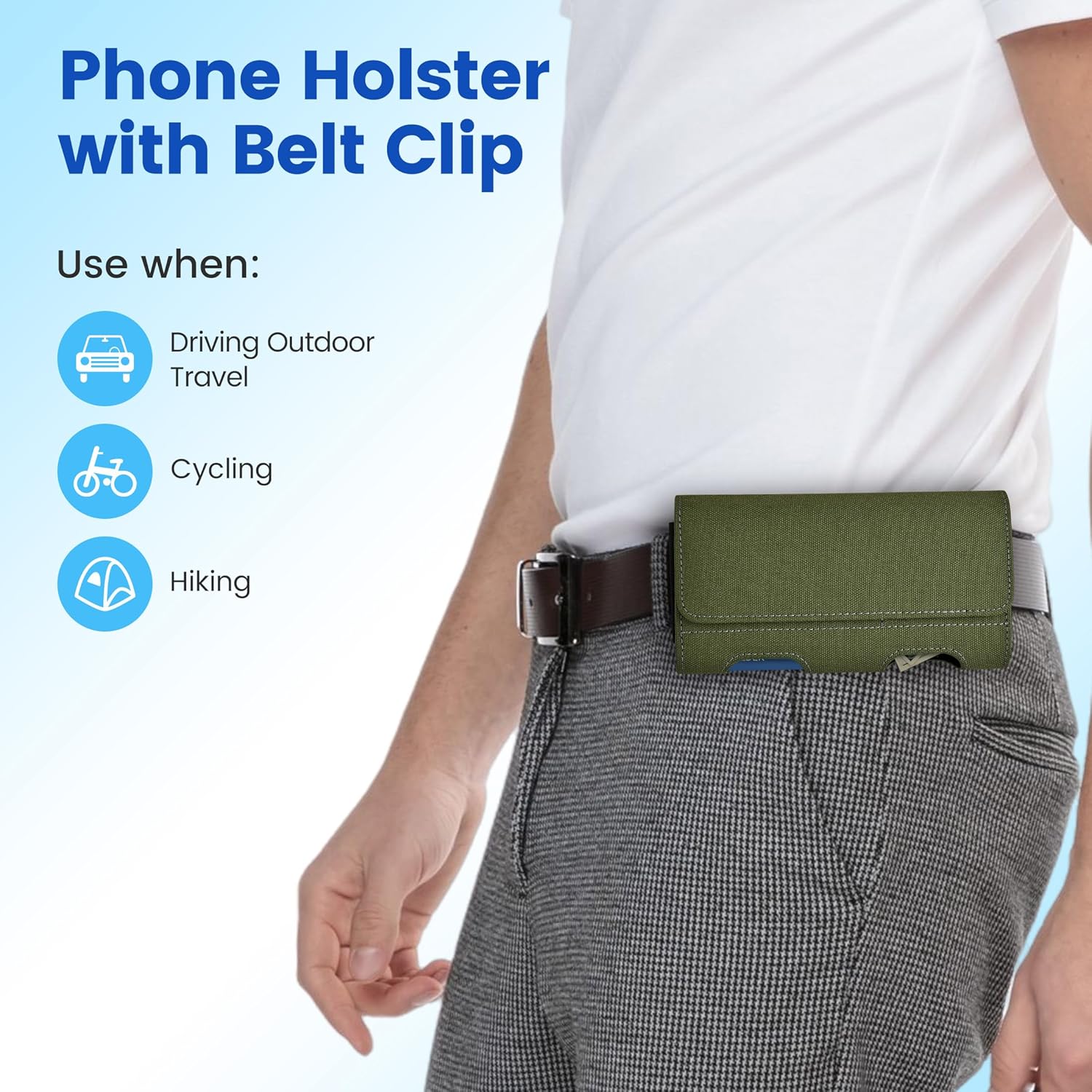 - Fits Phones with Slim to Medium Cell Phone Cases --- Designed to accommodate phones with slim to medium cell phone cases, including iPhones, Samsung Galaxy, and Motorola. Works great as a belt phone holder for men or iphone belt holder for men.