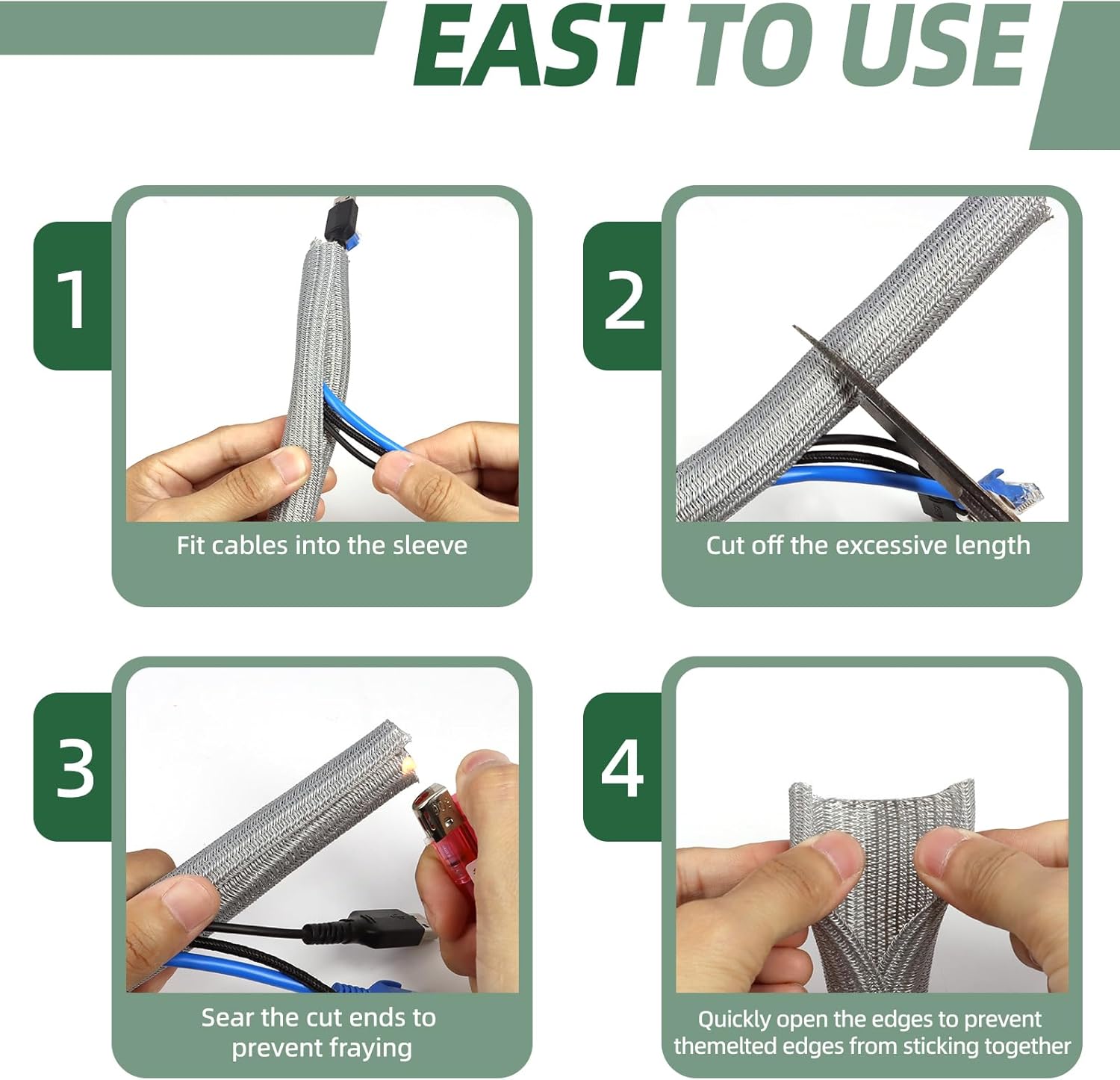 - MULTIPLE APPLICATIONS: Our cord sleeve ensures that wires stay tidy and reduces clutter and tripping hazards, making them ideal for desks, TVs, gaming setups, routers, and car wiring. Ideal for organizing and protecting cables in home, office, or industrial applications.