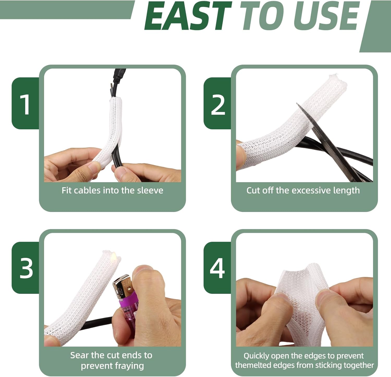 - MULTIPLE APPLICATIONS: Our cord sleeve ensures that wires stay tidy and reduces clutter and tripping hazards, making them ideal for desks, TVs, gaming setups, routers, and car wiring. Ideal for organizing and protecting cables in home, office, or industrial applications.