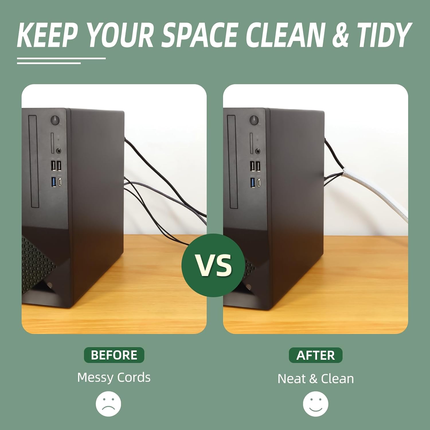 - MULTIPLE APPLICATIONS: Our cord sleeve ensures that wires stay tidy and reduces clutter and tripping hazards, making them ideal for desks, TVs, gaming setups, routers, and car wiring. Ideal for organizing and protecting cables in home, office, or industrial applications.