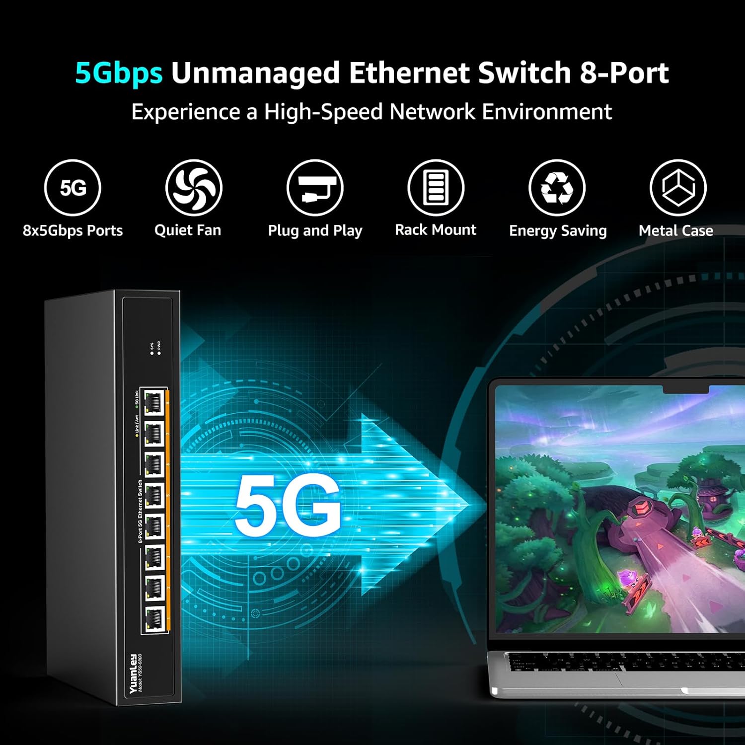 - Included Components : User Manual, YuanLey 8-Port 5G Network Switch, Power Cable