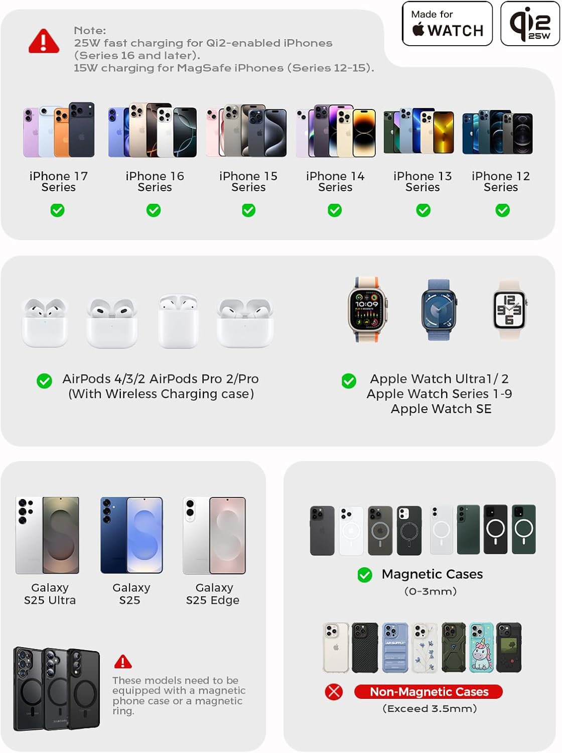 - Special Feature : 2025 Qi 25W Fast Charge, 36-Month Extended Warranty, Dual NTC Temperature Control System, Foldable and Portable, MFi Certified by Apple 2025 Qi 25W Fast Charge, 36-Month Extended Warranty, Dual NTC Temperature Control System, Foldable and Portable, MFi Certified by Apple