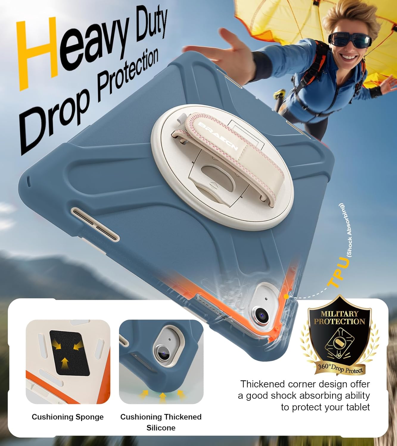 - [Full Body Protection &Kids Friendly]:This cover for ipad 11/10 features triple-layer construction and extra orange TPU cushioning strips, the outer silicone layer reinforces the dropproof performance of all four corners, plus there are 4x shockproof sponge pads on the bottom cover to prevent scratches to your tablet.Provides the ultimate in protection and durability, safe for kids to use.