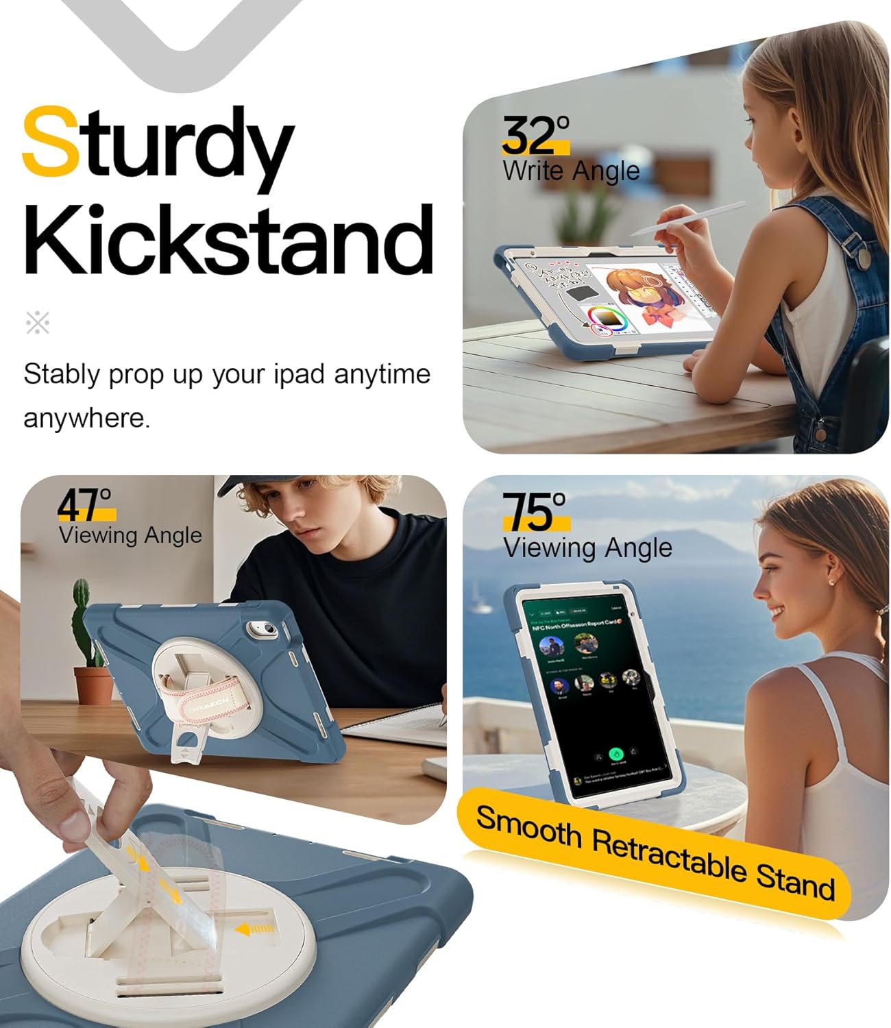 - [Screen protector and portable pencil holder]:The screen cover of this ipad 11th/10th 2025/2022 case has a built-in screen protector to fully protect your iPad. The back of case is equipped with a portable pen holder to securely stores your pen.