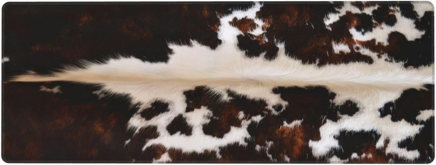 Gaming Mouse Pad, Large Non-Slip Rubber Base Mousepad, Keyboard Mouse Mat, Desk Pad with Stitched Edges, 31.5x11.8inch, Brown Cowhide