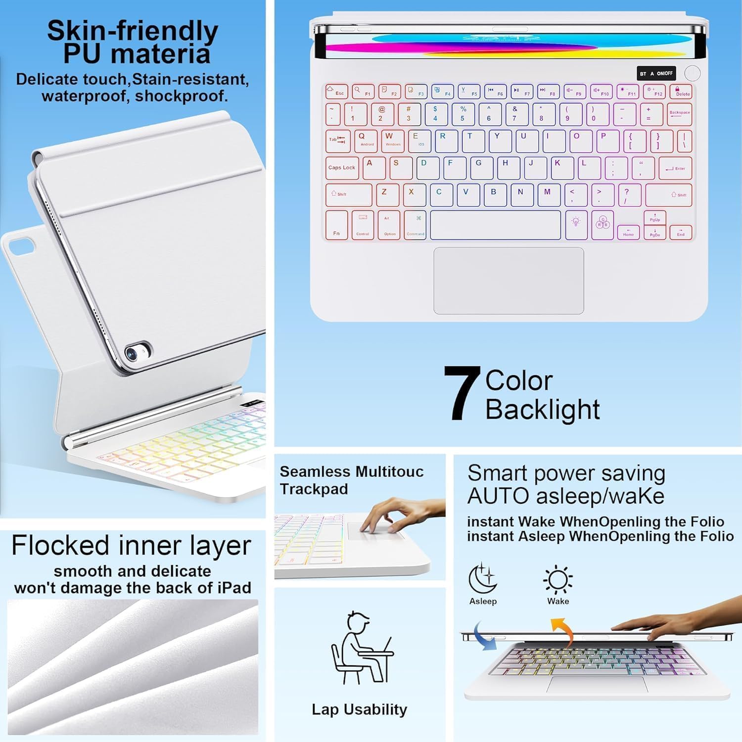 - 7-Color Backlit Keyboard Case for iPad 11th/10th Gen:From dawn to dusk, adapt effortlessly! Adjusting 7 backlight and 3 levels of brightness ensures clear visuals in every setting, enhancing your immersive experience.