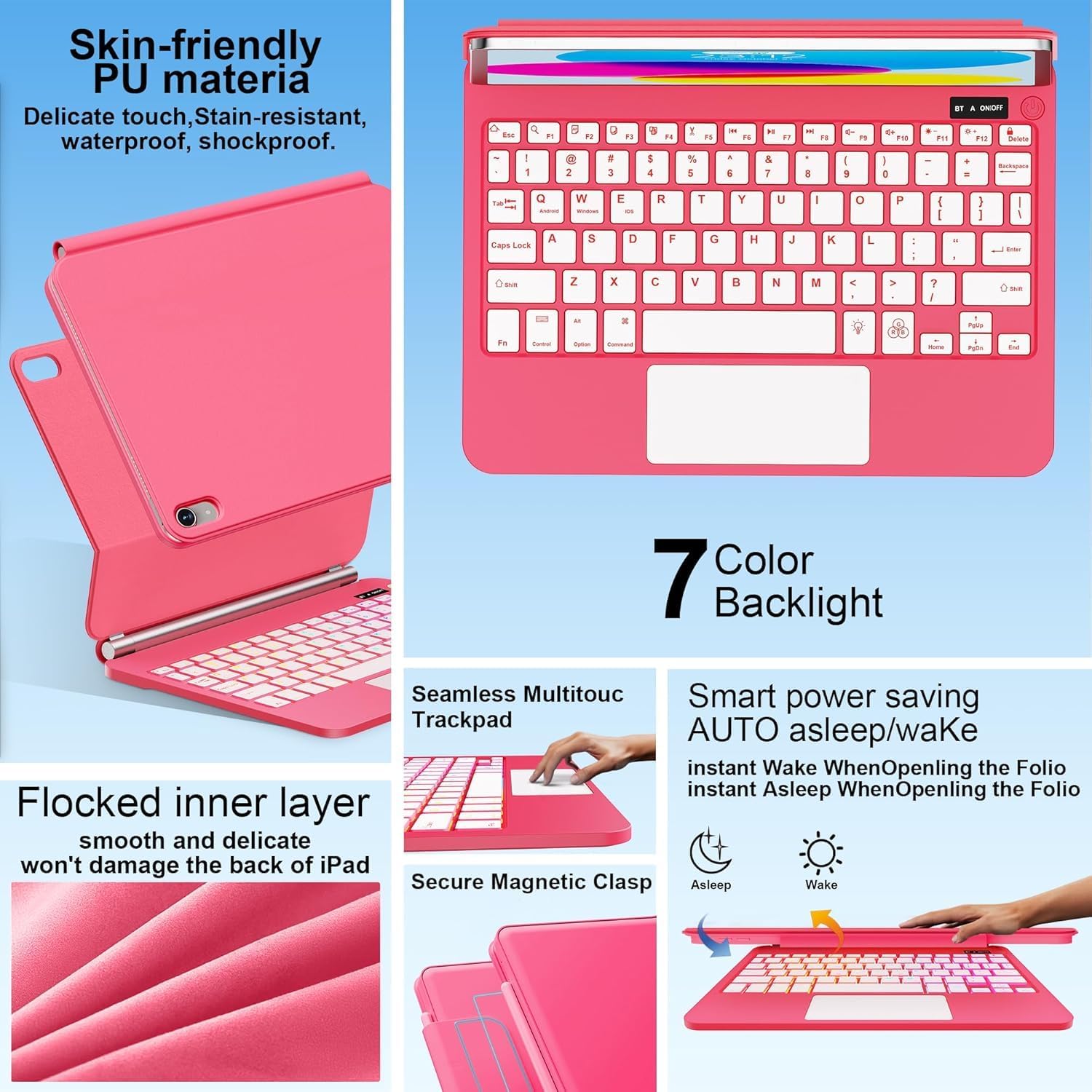 - Multi-Touch Clickable Trackpad Keyboard for iPad 10.9" iPad 11"inch : The Multi-Touch trackpad supports full-area press, swipe gestures, and media control. Its sensitivity can be adjusted via iPad settings, providing smooth, seamless operation