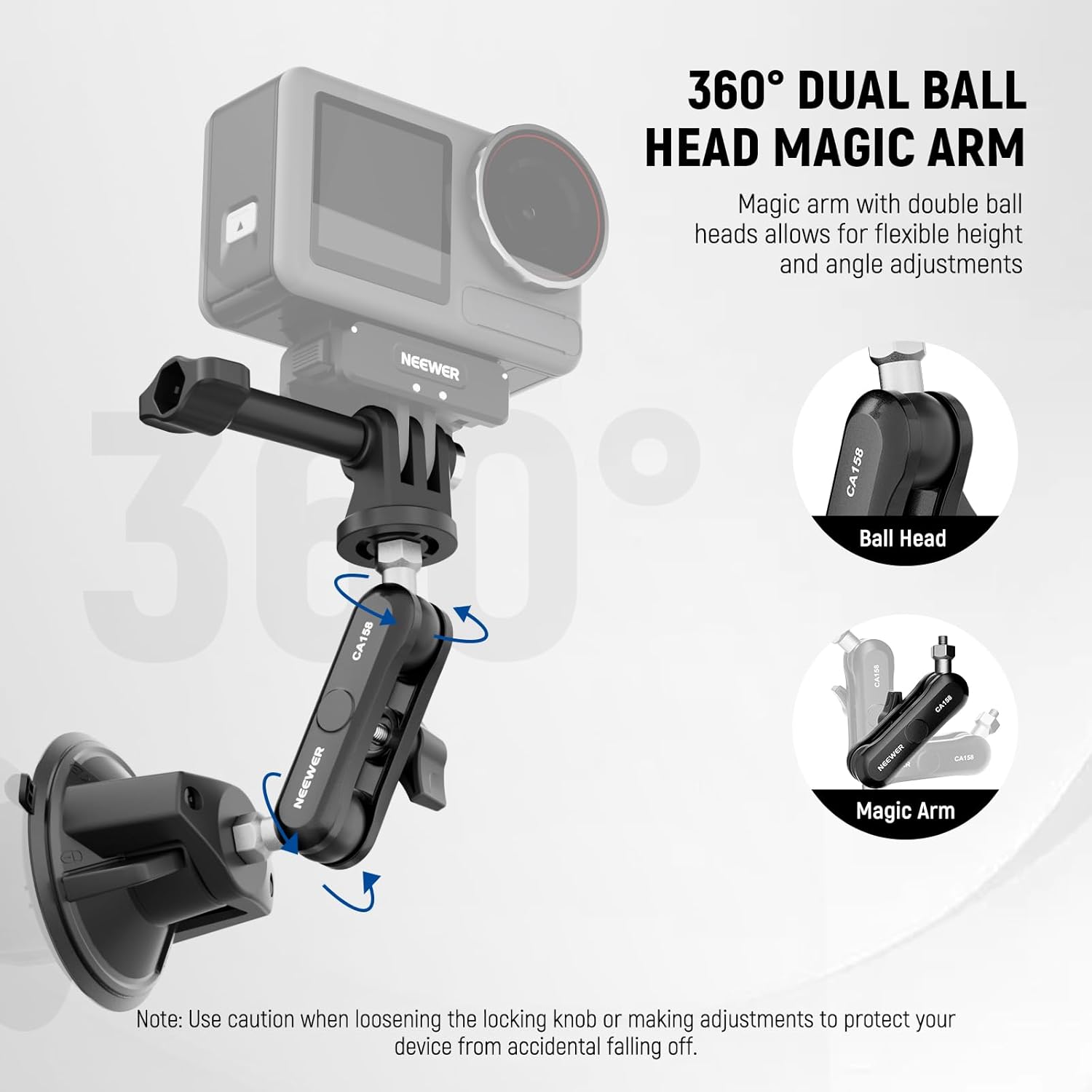 NEEWER Suction Cup Phone Holder & Camera Mount Compatible With GoPro DJI Insta360 iPhone, Car Phone Mount with Action Camera Adapter 360° Magic Arm for POV Windshield Glass Vlog Video Recording, CA158